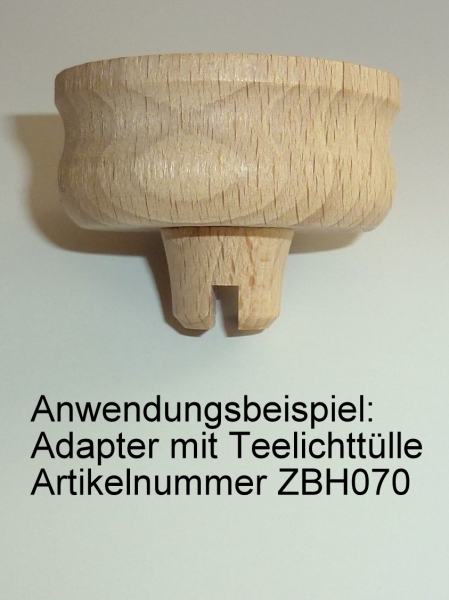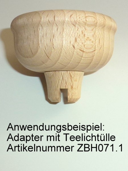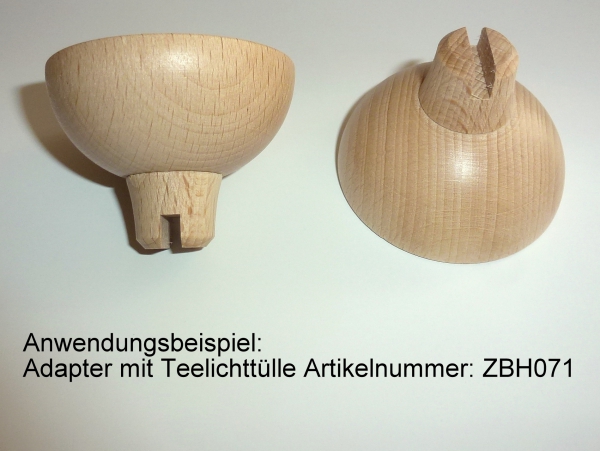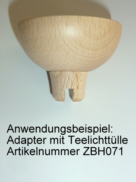 - genuteter Adapter mit 8mm Aufsteckzapfen für Teelichttüllen