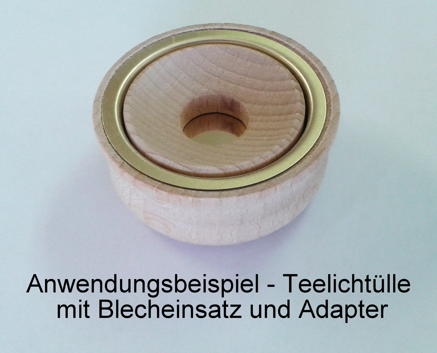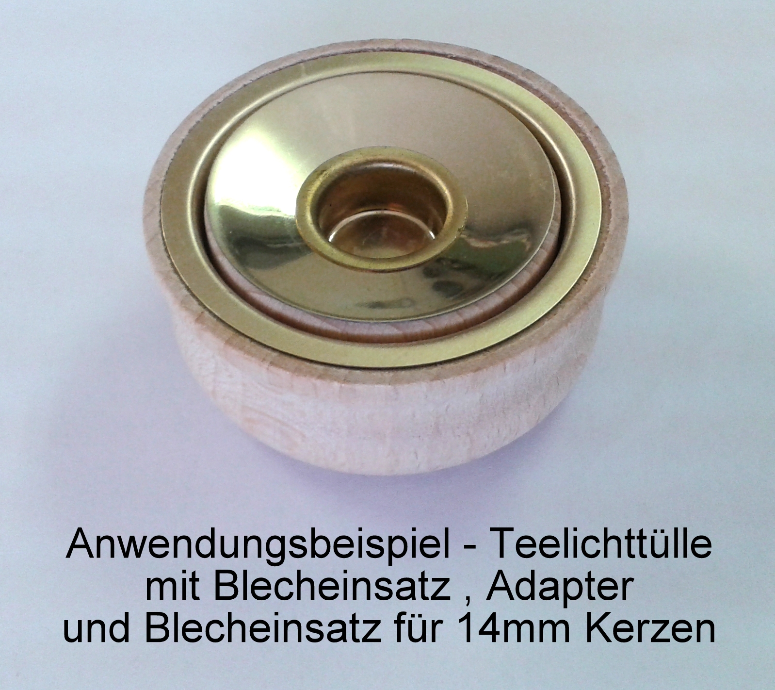 - mit dem Adapter besteht die Möglichkeit zum Nachrüsten einer Teelichtertülle mit einem 14mm Blecheinstz