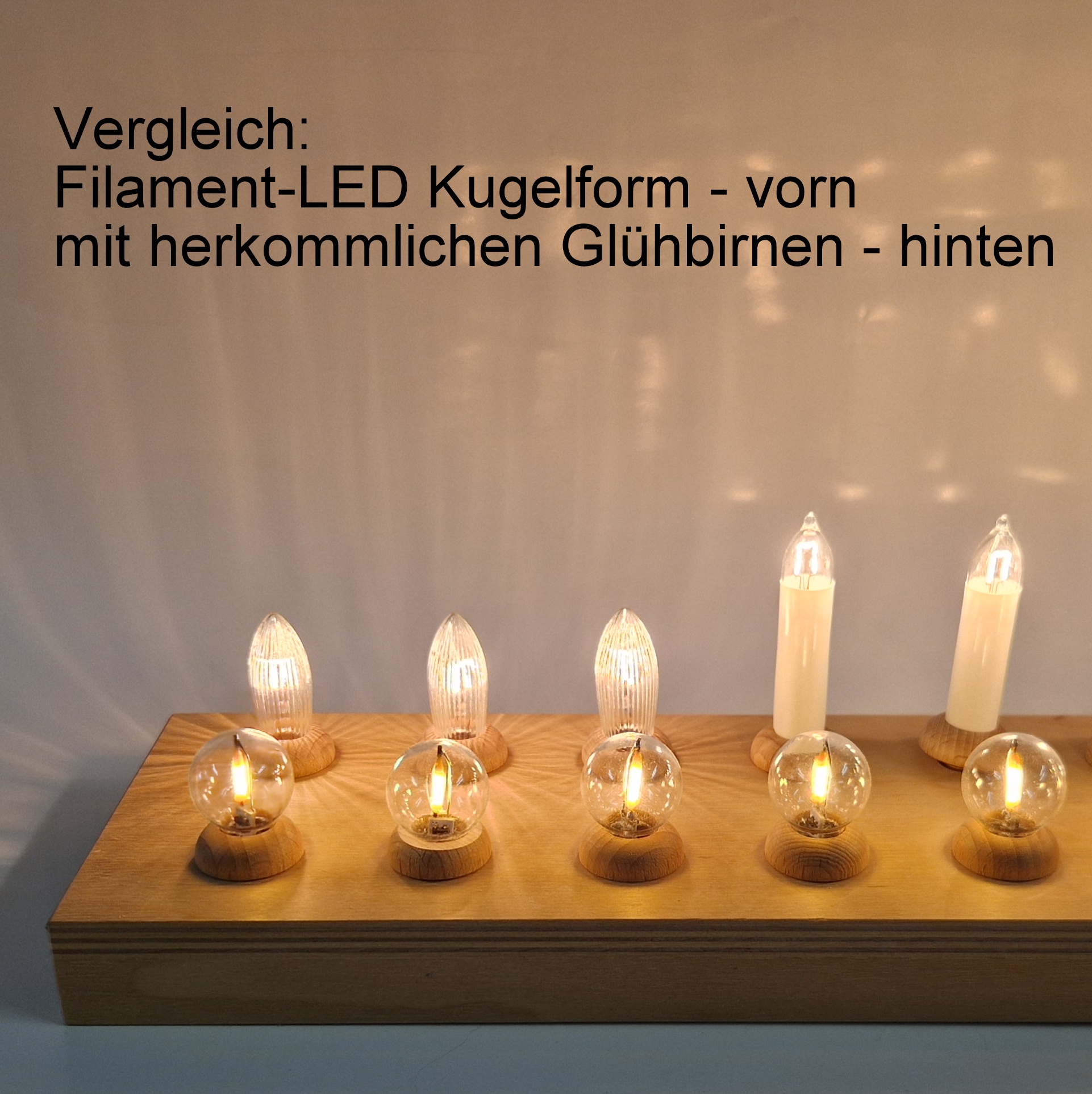 - Diese LED-Filamentkerze ist nicht in Kombination mit herkömmlichen Glühlampen verwendbar. Dies würde zur Zerstörung der LED-Filamentkerze führen. Beim Wechsel von herkömmlichen Glühbirnen auf LED-Filamentkerzen ist darauf zu achten, dass man zuerst alle herkömmlichen Glühbirnen entfernt und dann erst die LED-Filamentkerzen eindreht.