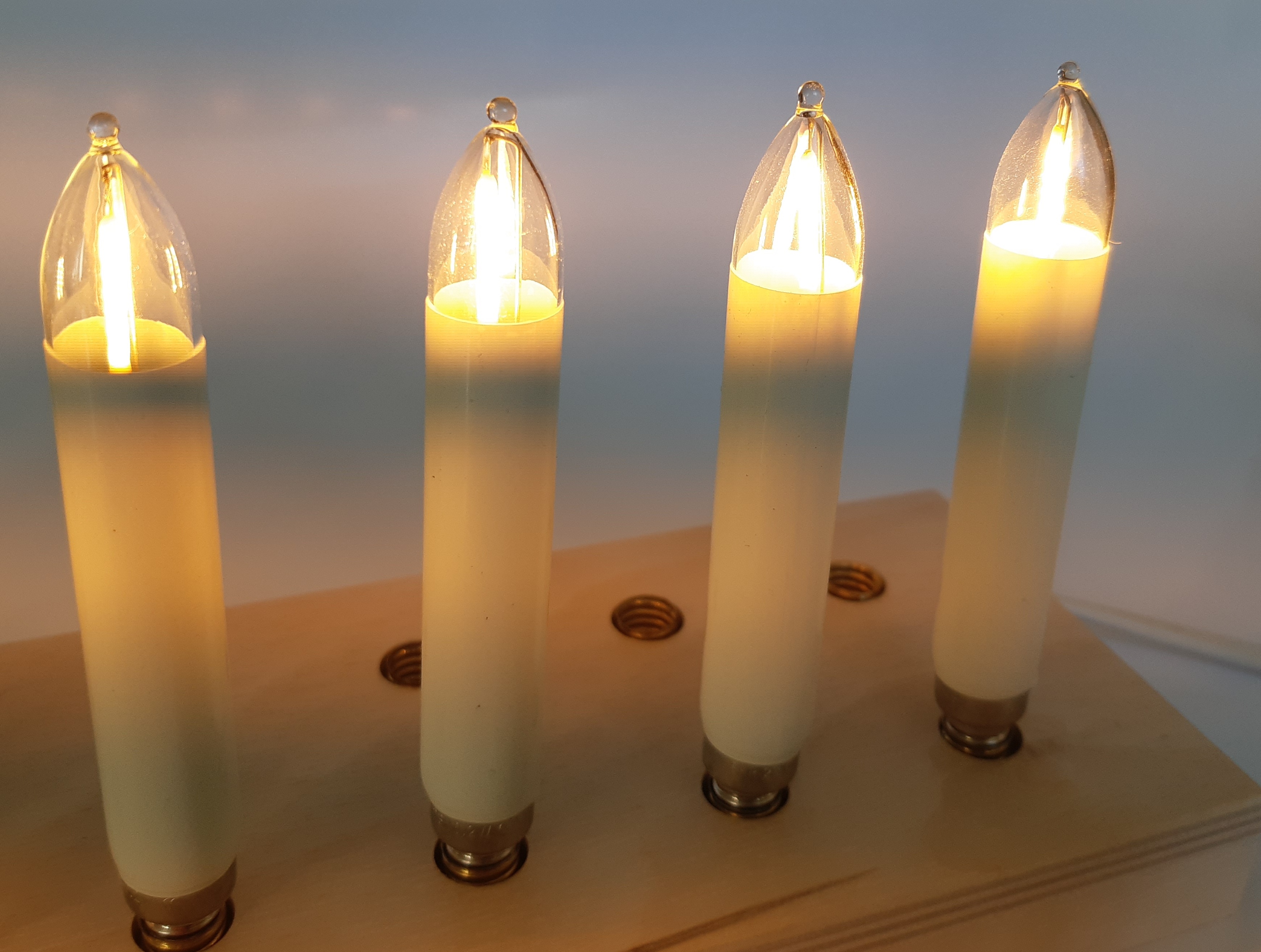 • LED-Filamentkerzen haben die gleiche Helligkeit und Lichtfarbe wie herkömmlichen Glühbirnen.
