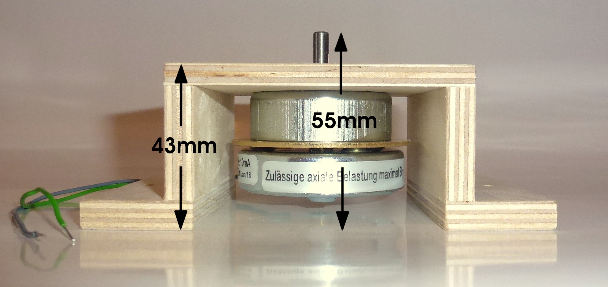 - Höhe bis Grundplattenoberkante 43mm / Höhe bis Oberkante Motorwelle im eingebauten Zustand 55mm