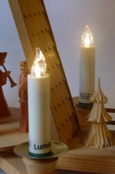 Sie wollten schon immer Ihre Pyramide oder Schwibbogen mit elektrischen Licht ausstatten? Sie hatten aber keine Möglichkeit die Kabel zu verlegen? Wir haben hier für Sie die Lösung. Das LUMIX Classic Mini S - System. Hergestellt in Deutschland von der Firma Krinner. Einfach in den Blecheinsatz der Wachskerze  z..B. Ihrer Pyramide setzen. Dank des magnetischen Fußes haben Sie einen perfekten Halt der LED-Kerze.