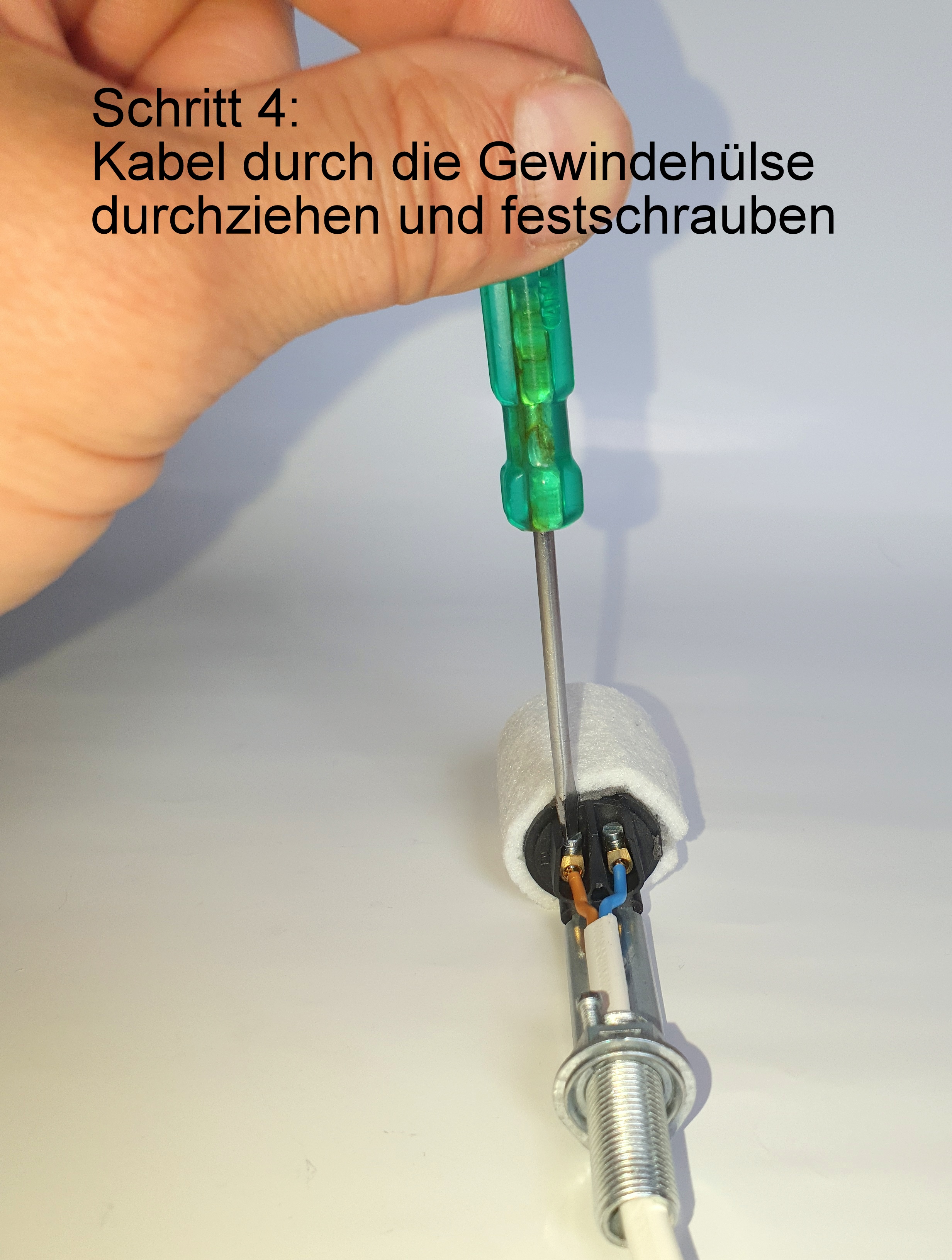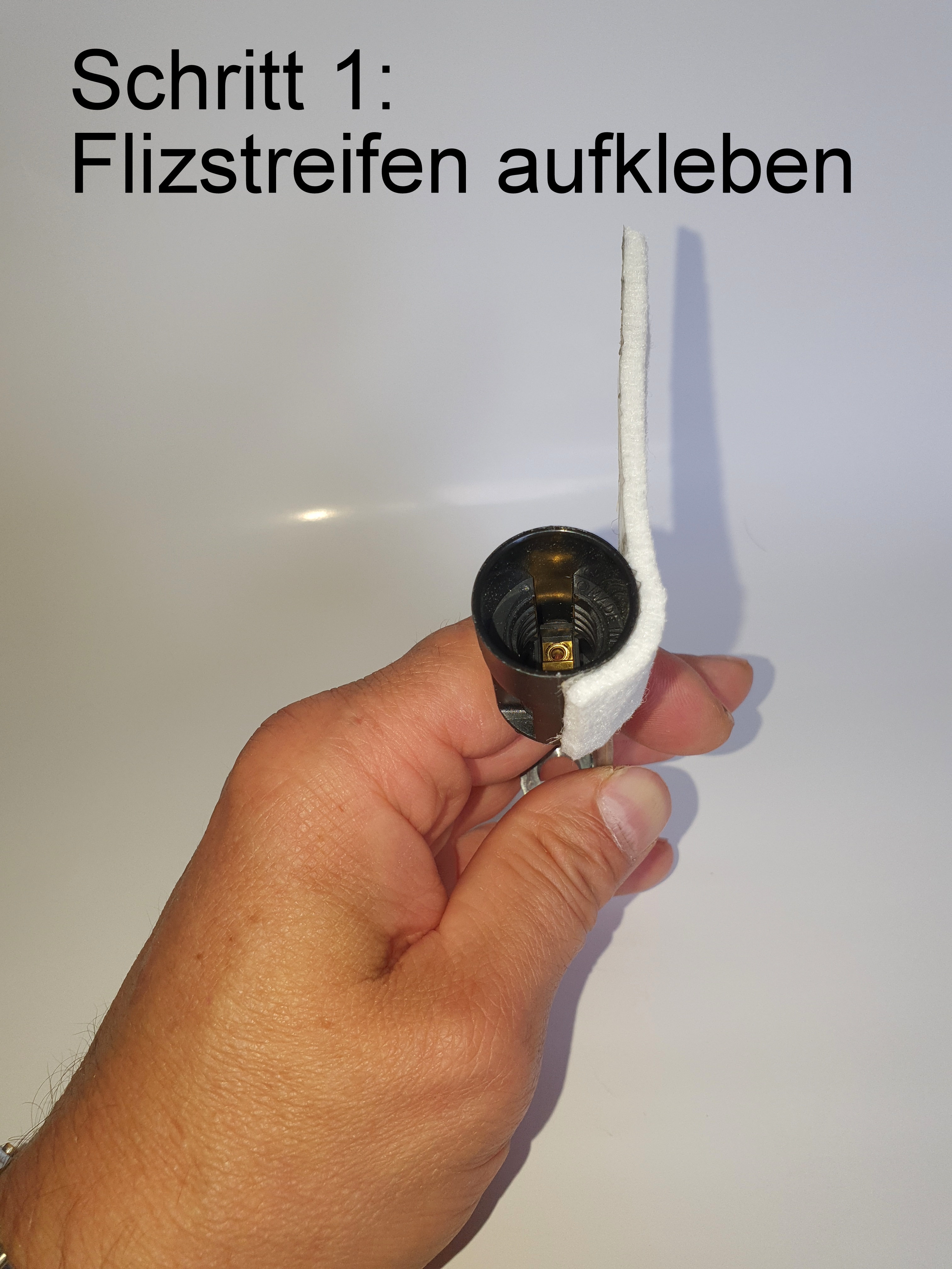 - selbstklebenden Filzsteifen 85x30x3mm als Distanzhalterung zwischen Fassung und Glaskolben