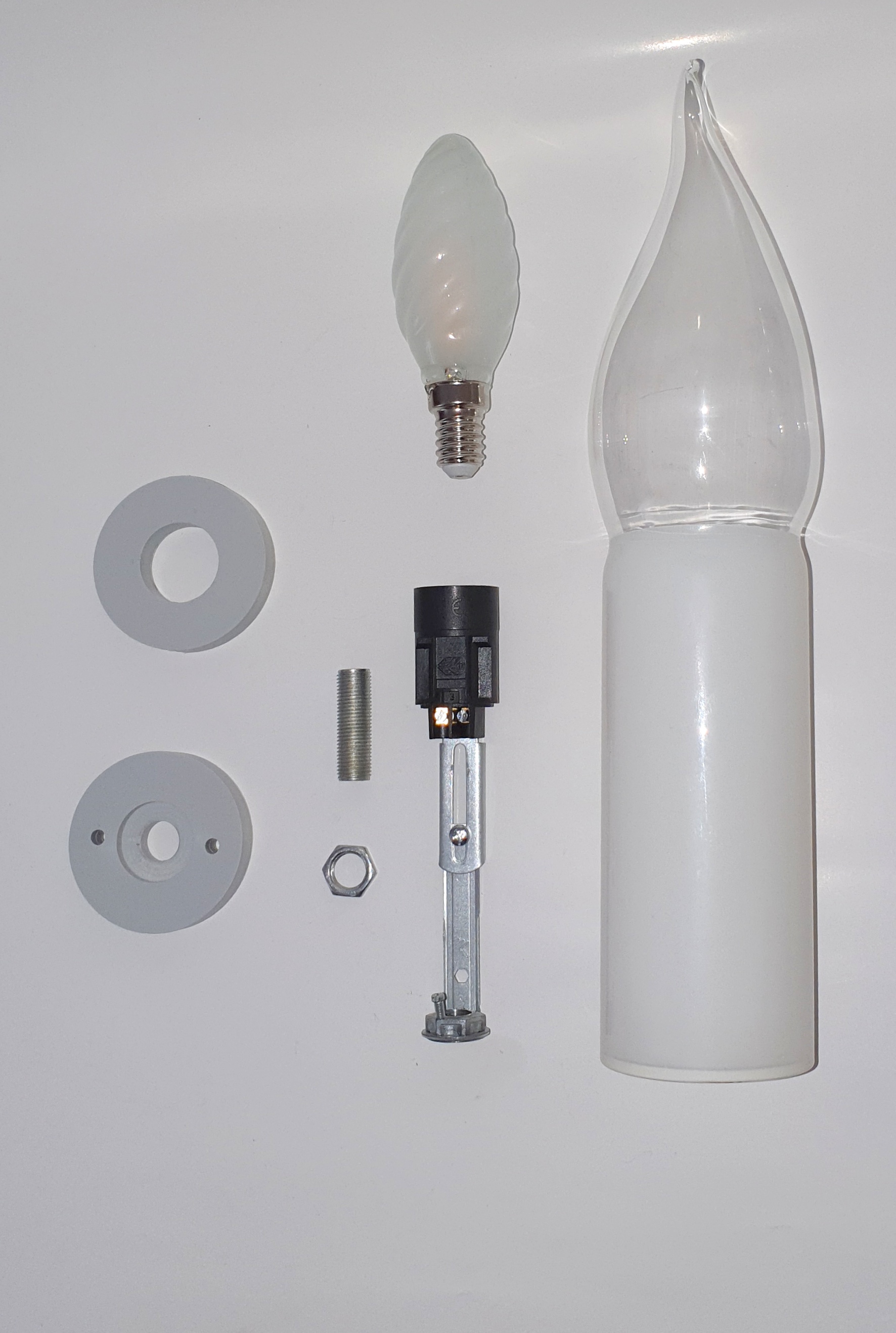 Komplettset mit Glaskolben, Fassung und Befestigungsmaterial