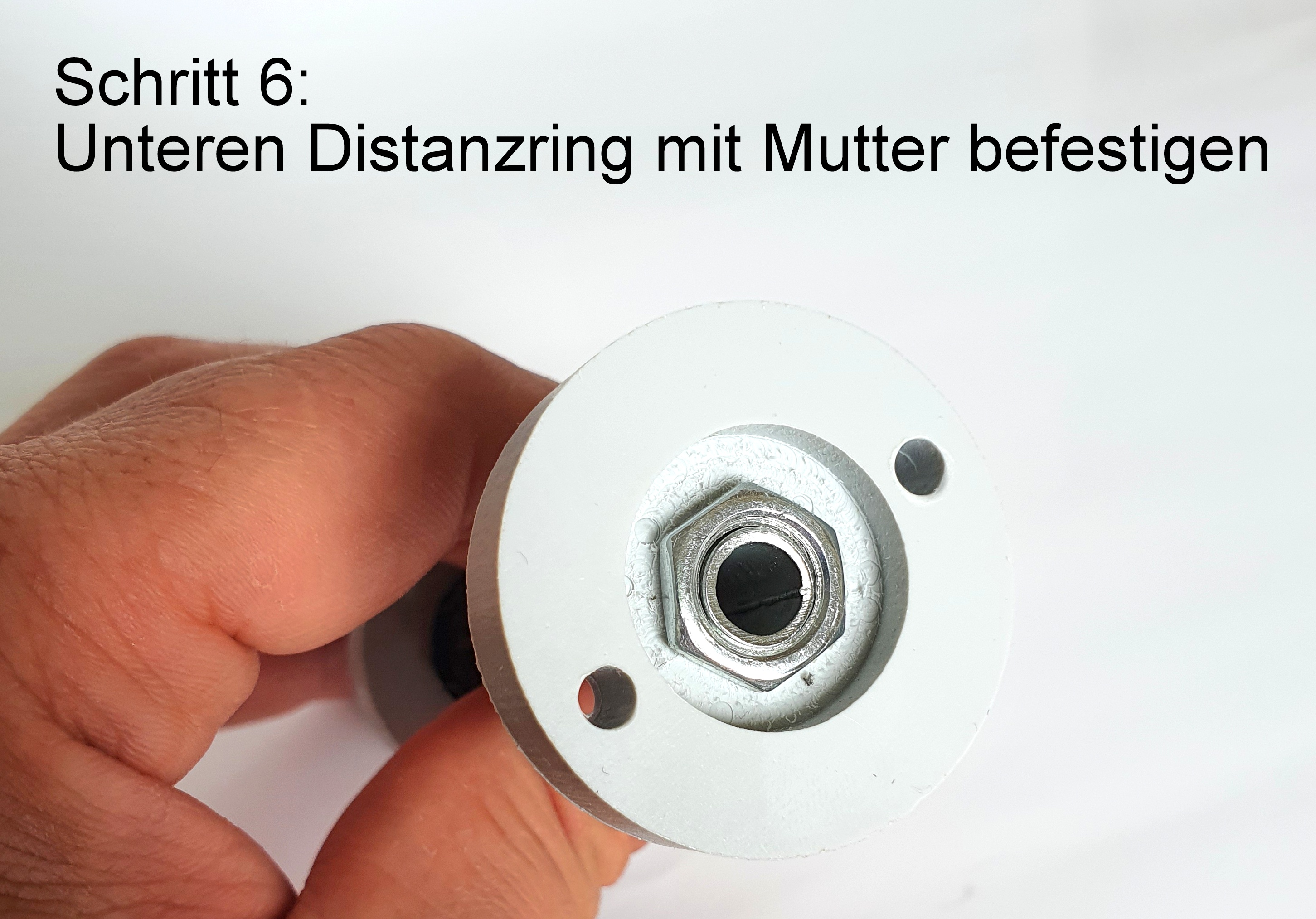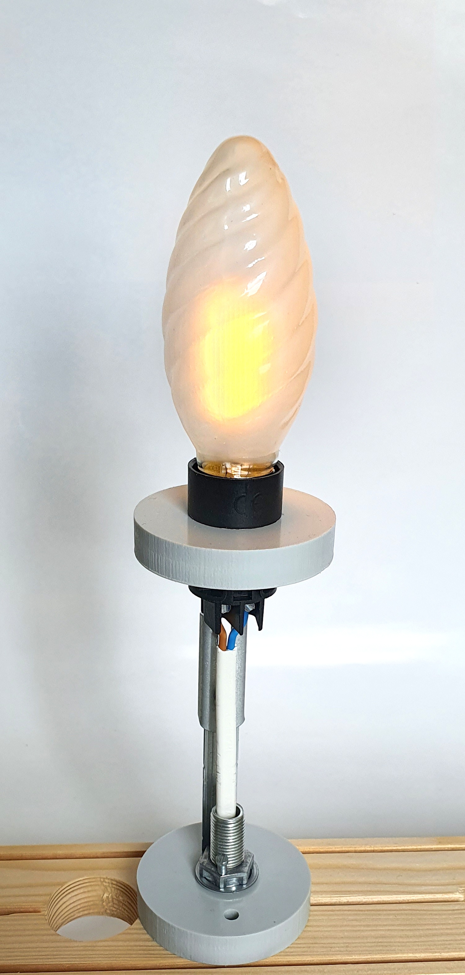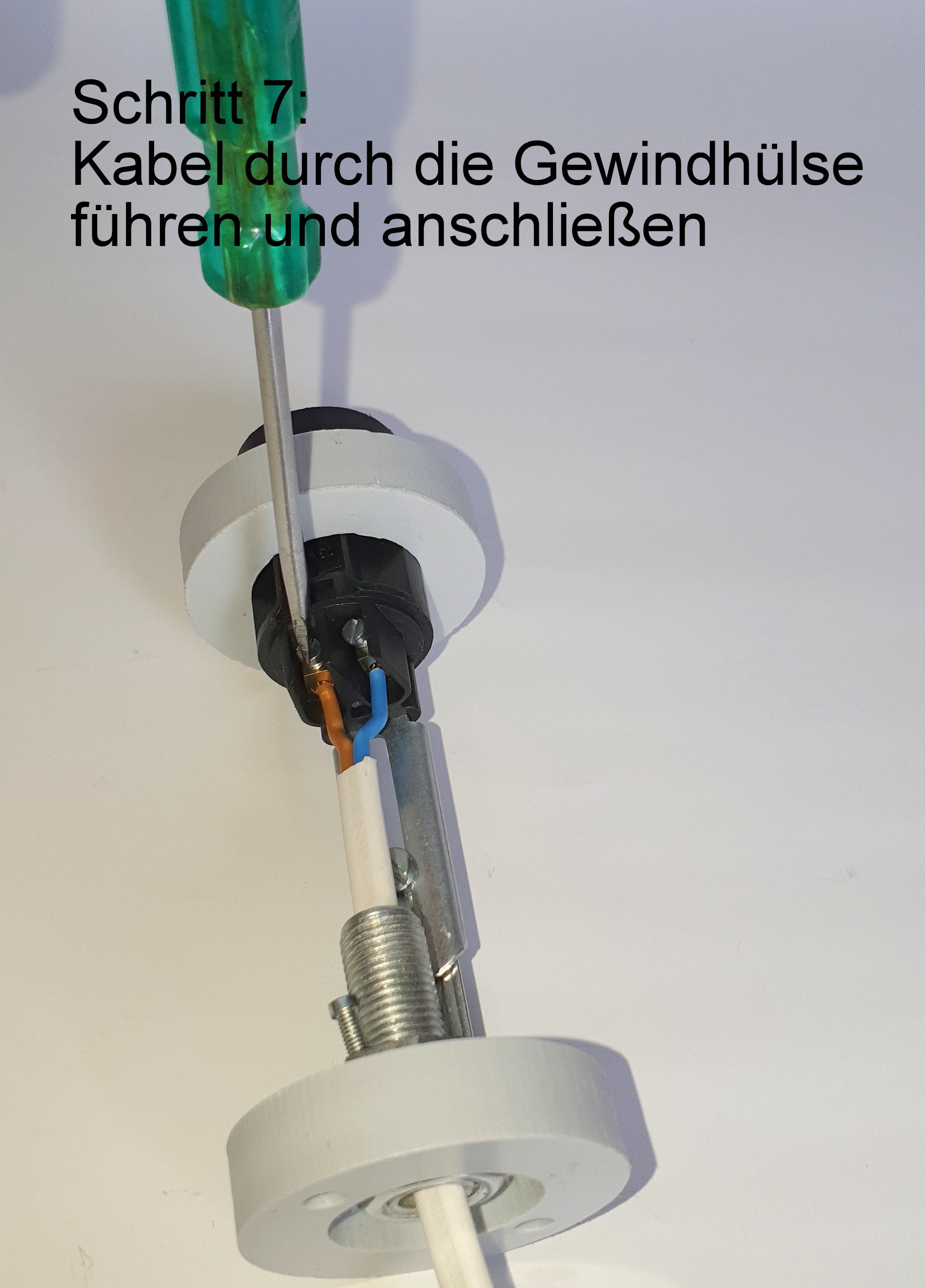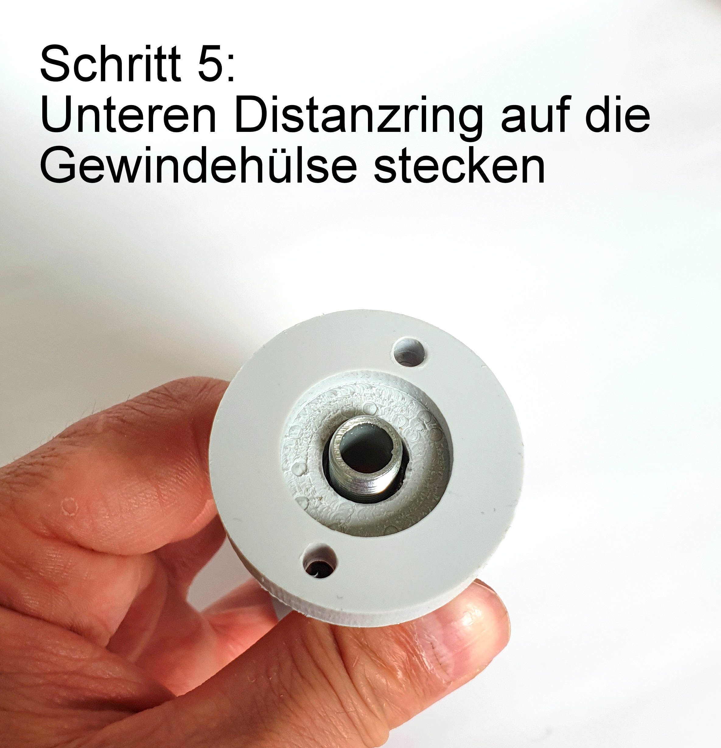 • 2 Kunststoffringe Stärke 10mm, Ø ca. 39mm als Distanzhalterung zwischen Fassung und Glaskolben, unterer Ring mit Bohrungen zur Befestigung nach unten