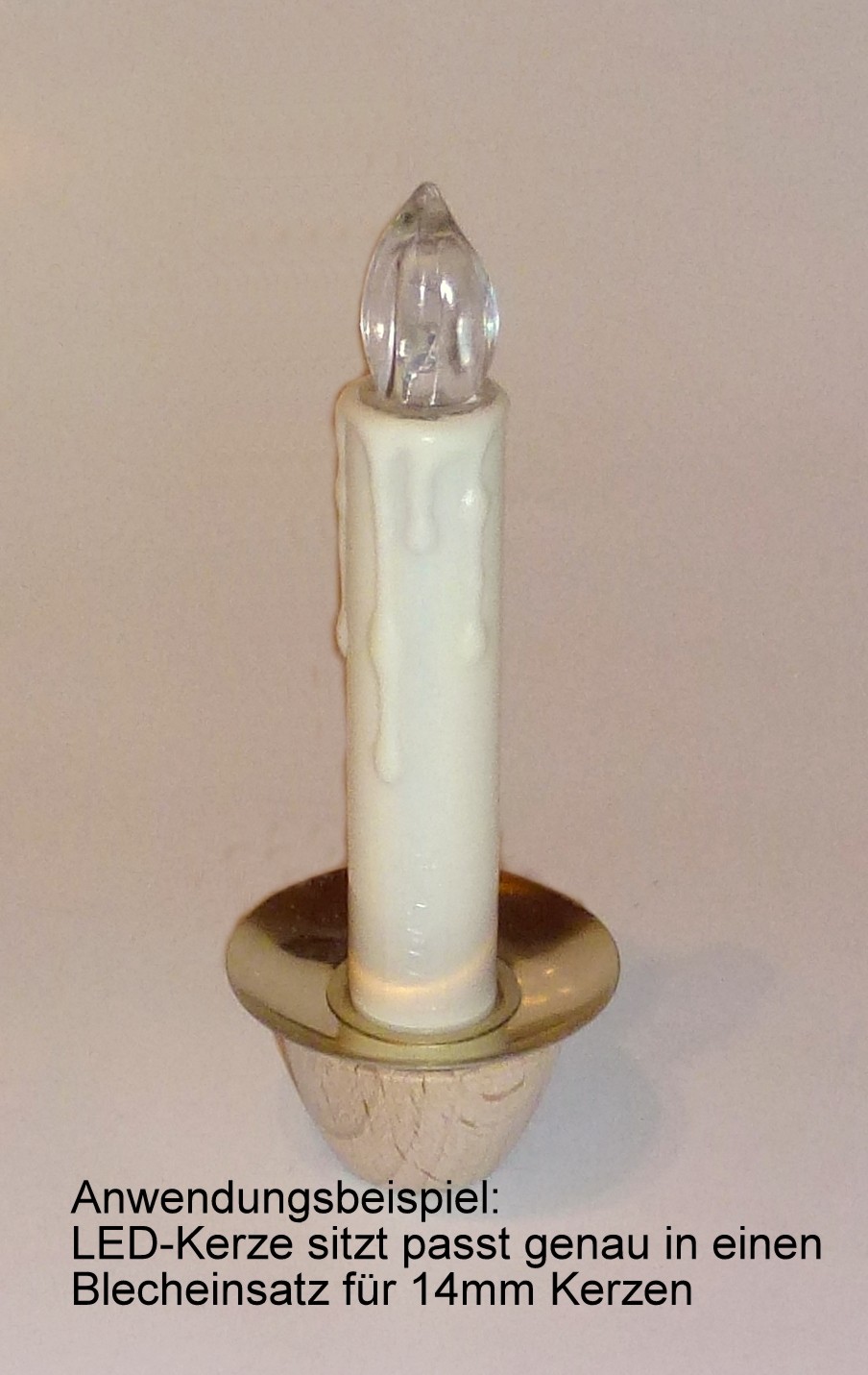 - Durchmesser der LED-Kerze unterer Bereich (Höhe 8mm):14mm