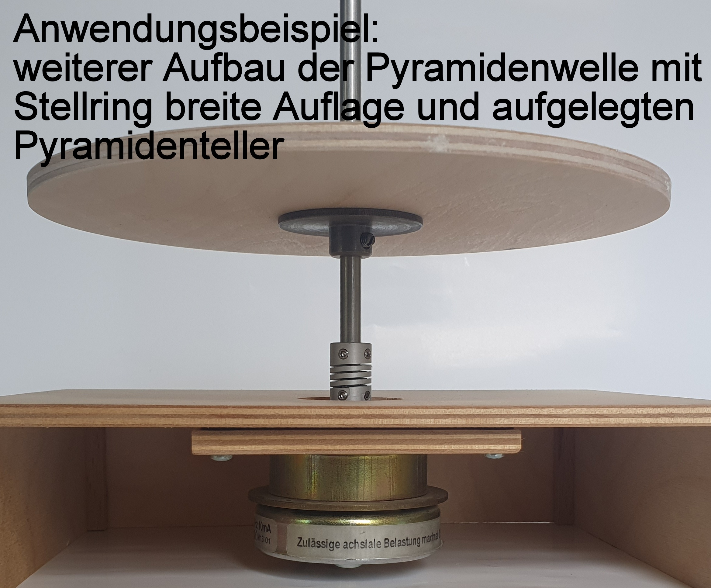 Zur besseren Entscheidungsfindung haben wir hier 2 Videos eingestellt, wo sie die gleiche Pyramide mit 3.0 U/min und 6.8 U/min sehen. Die Pyramide ist ca. 1 Meter hoch, hat 4 Etagen und die Pyramidenteller haben folgende Durchmesser: 24cm / 18cm / 13cm / 11cm.