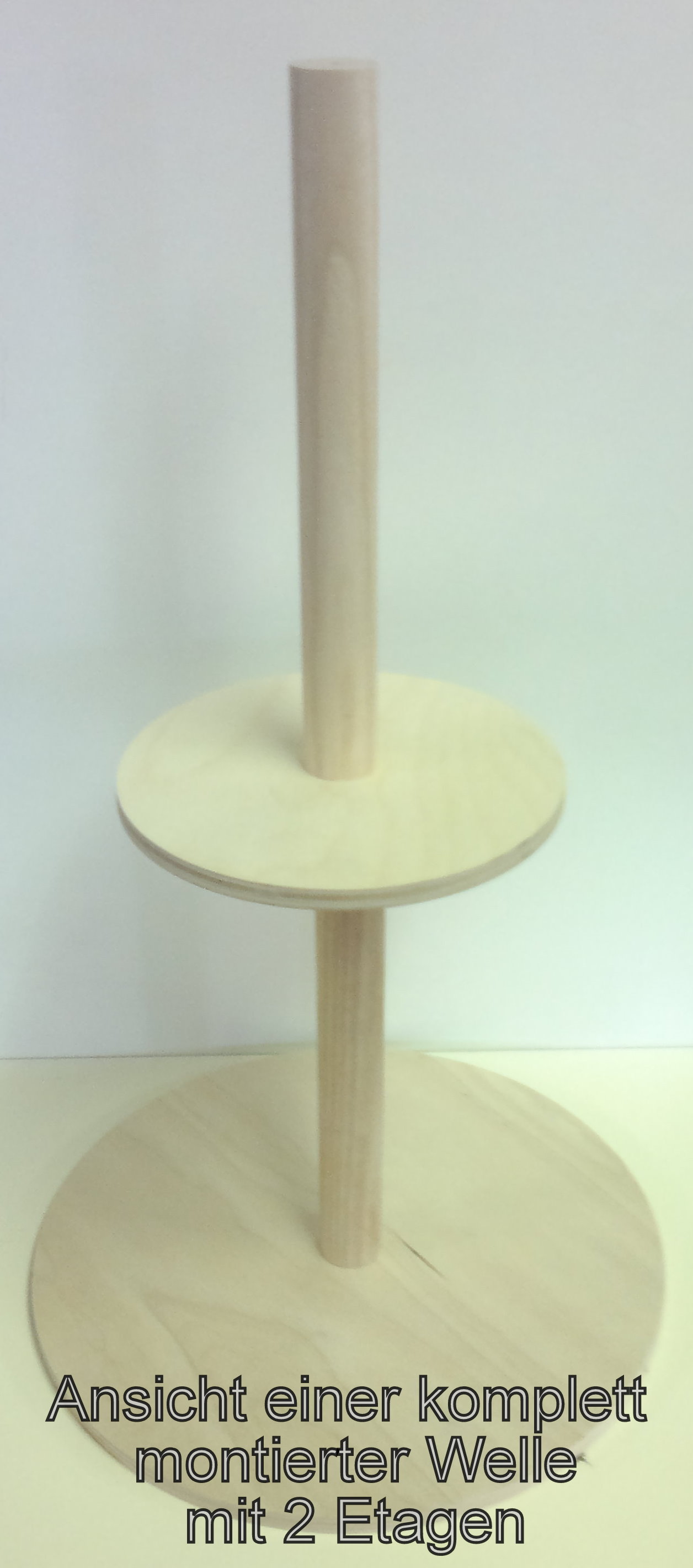 - am unteren Ende der Welle ist ebenfalls ein 12mm Dübel mit 3mm Bohrung, wo der erste Teller aufgesteckt werden kann