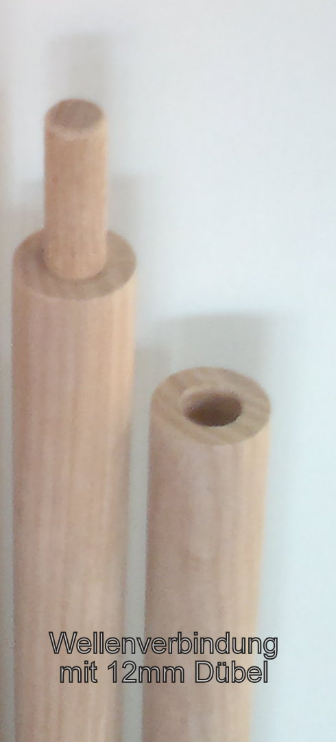 - einzelnen Wellenteile werden durch einen 12mm Dübel verbunden